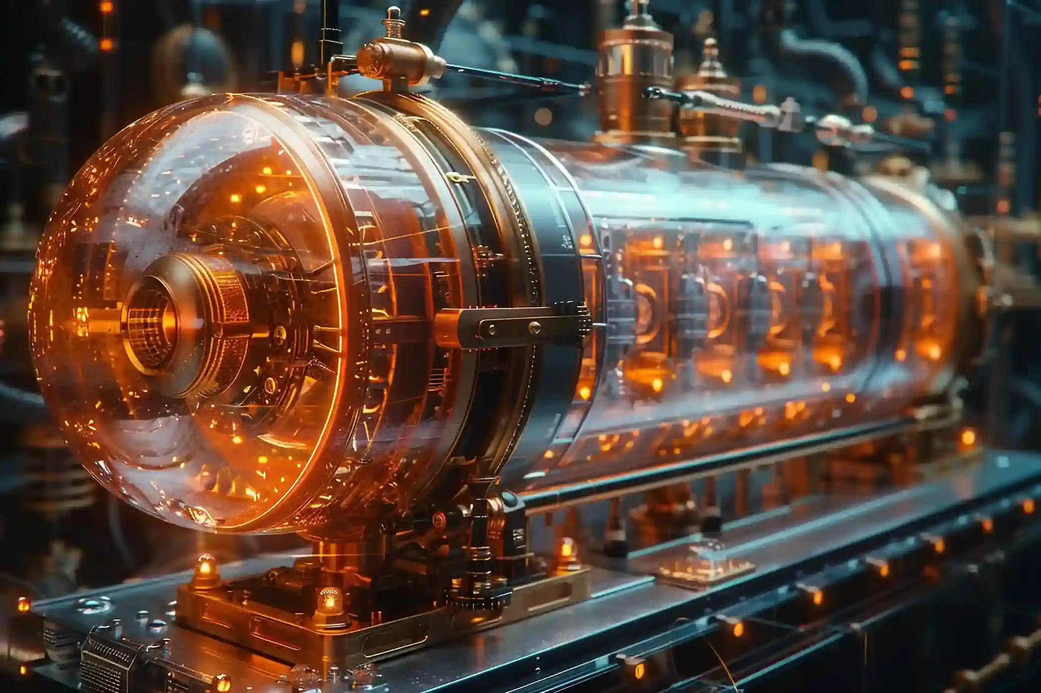 A glass-like pod with shifting holographic circuits, suspended in mid-air by anti-gravity fields. It bends light around it as it powers up.